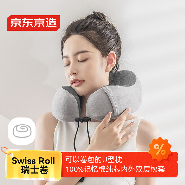 首页>居家日用>京东京造 Swiss Roll瑞士卷旅行枕 记忆棉飞机办公室颈椎U型枕午睡枕 灰色